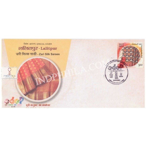 One District One Product Special Cover Of Lalitpur Zari Silk Sarees Released On 29Th September 2021 From Lucknow Uttar Pradesh By India Post