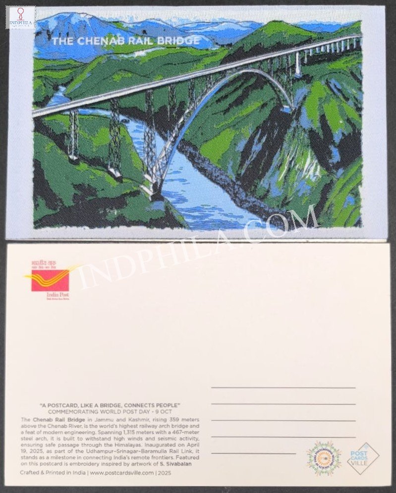 Picture Postcard of The Chenab Rail Bridge With Micro Embroidery Format Issued By India Post