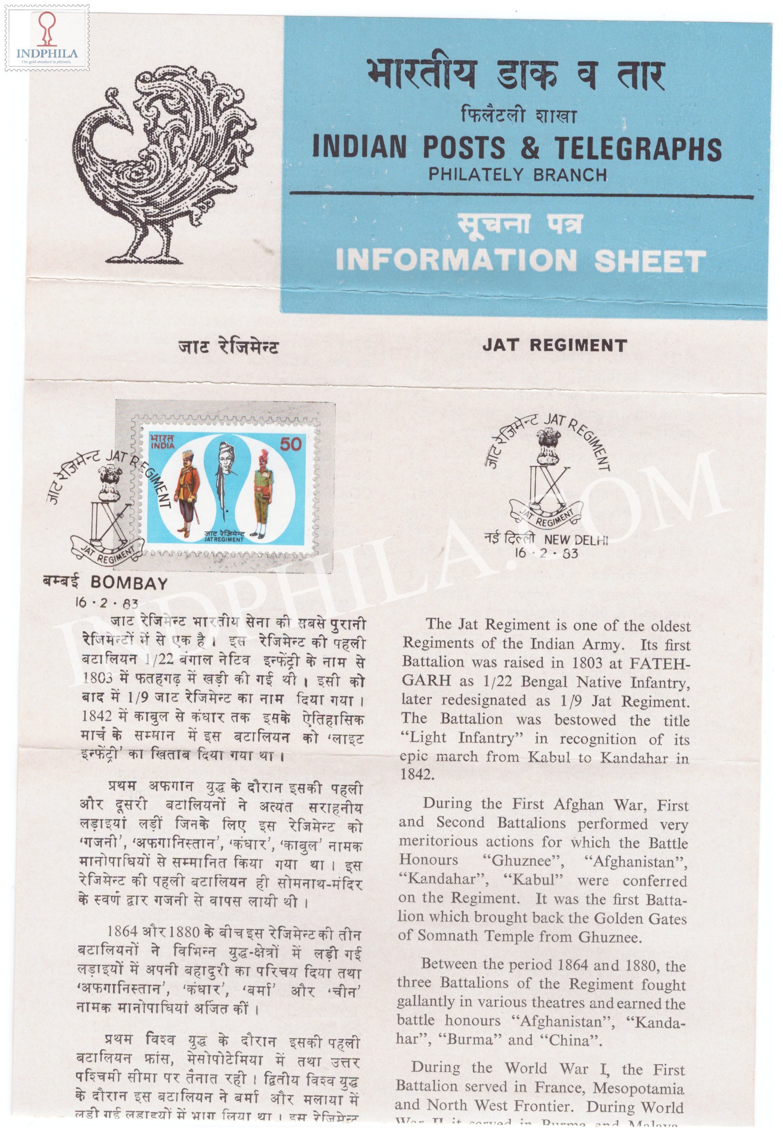 Presentation of Colours 12 15 and 19th Battalions of the Jat Regiment Brochure with First Day Cancellation 1983 Issued By Postal Department