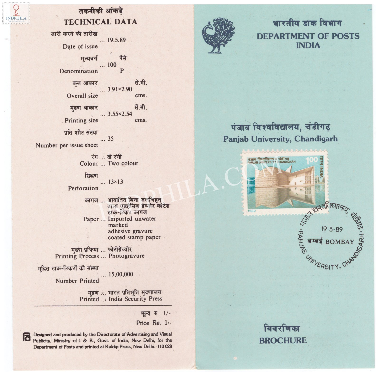 Punjab University Chandigarh Brochure with First Day Cancellation 1989