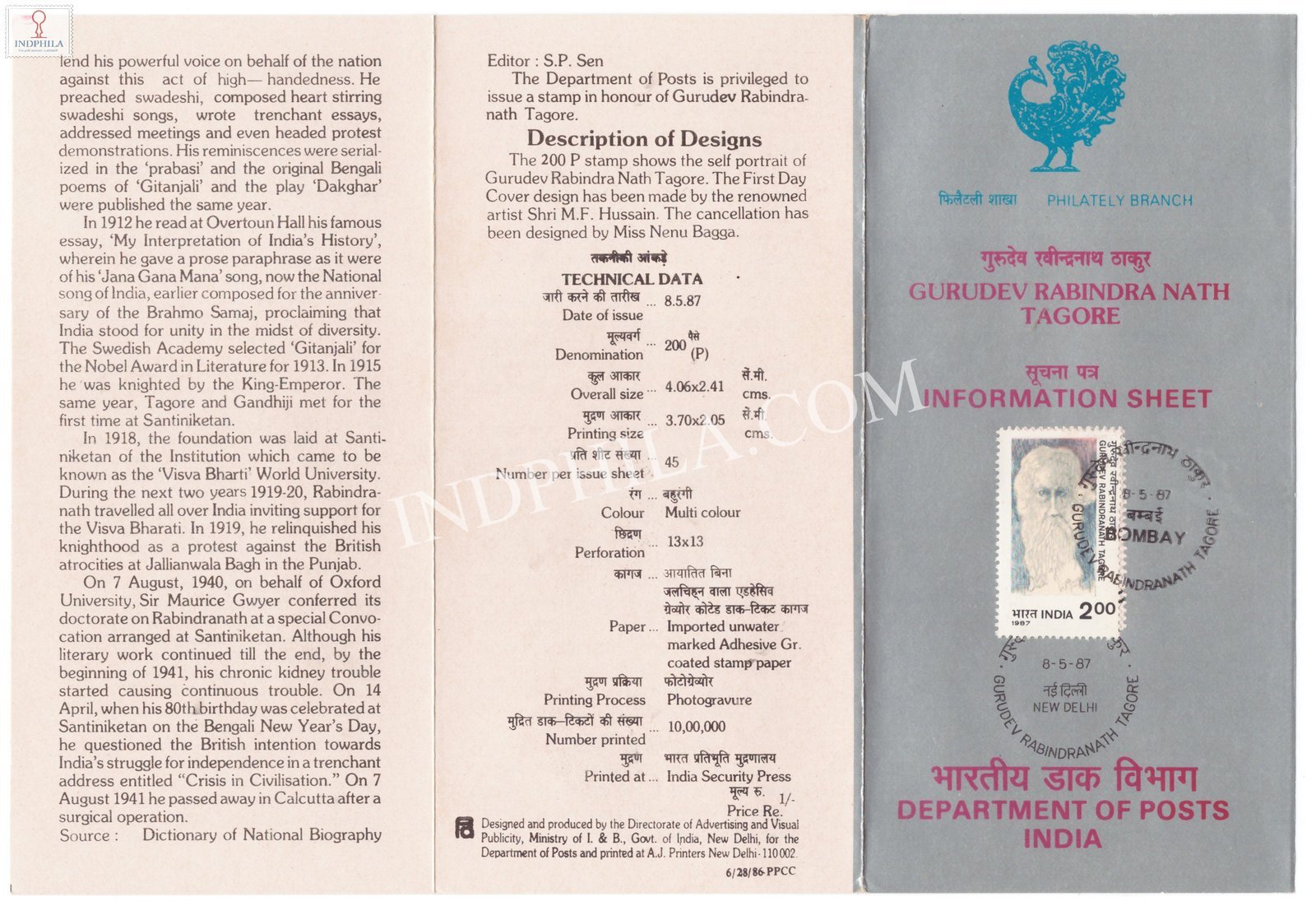 Rabindranath Tagore Brochure with First Day Cancellation 1987