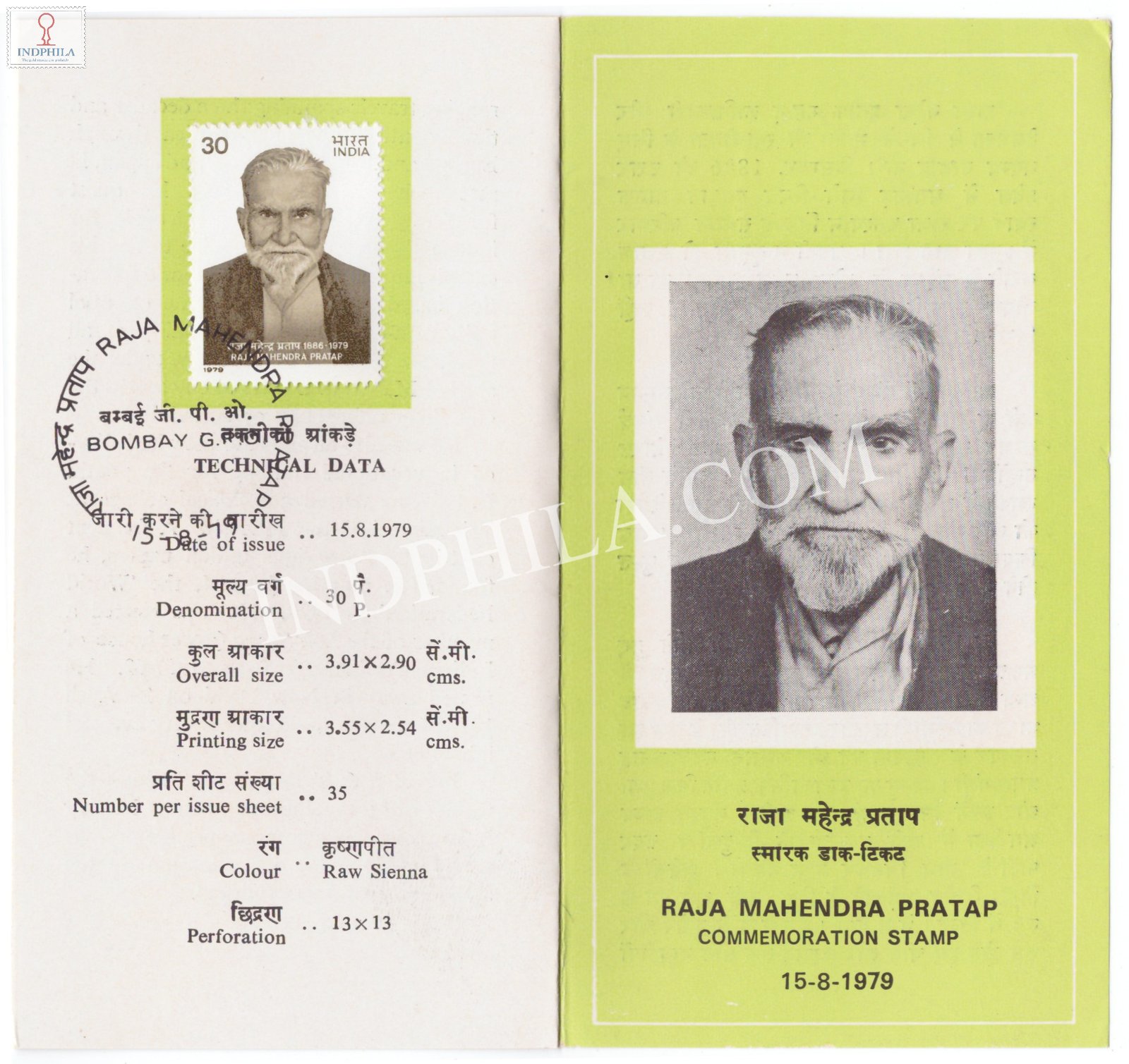 Raja Mahendra Pratap Brochure with First Day Cancellation 1979 Issued By Postal Department