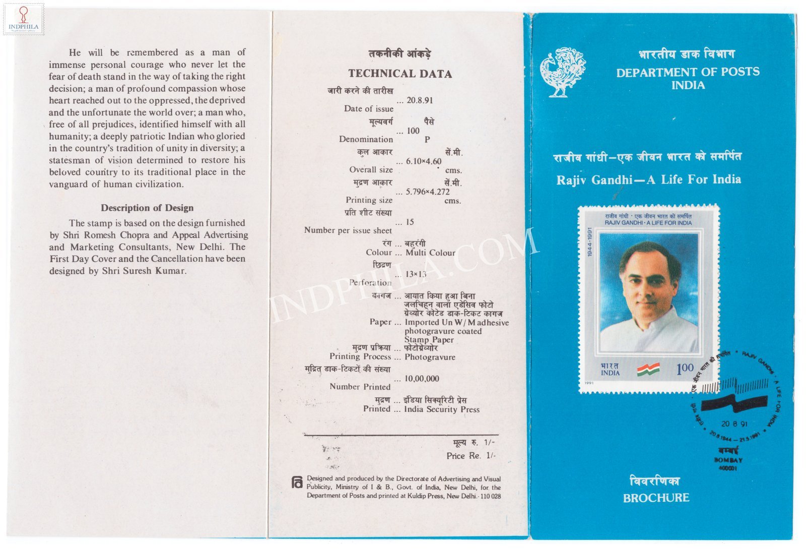 Rajiv Gandhi Brochure with First Day Cancelation 1991
