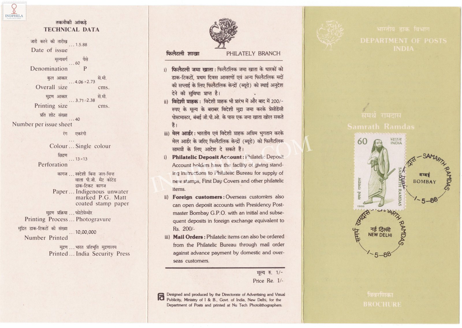 Samarth Ramdas Brochure with First Day Cancellation 1988