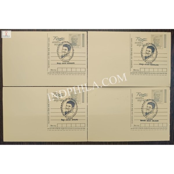 Set of 4 Place Cancellation Postcard of 50th Year Birth Annivesary of Dr. Puneeth Rajkumar 17-03-2025
