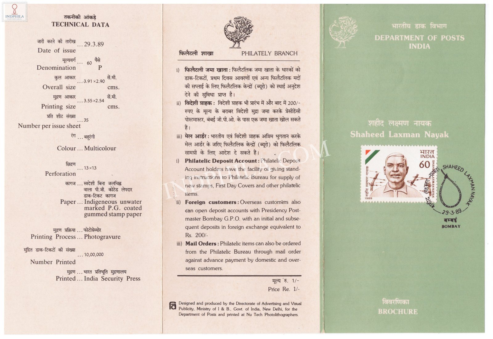 Shaheed Laxman Nayak Brochure with First Day Cancellation 1989