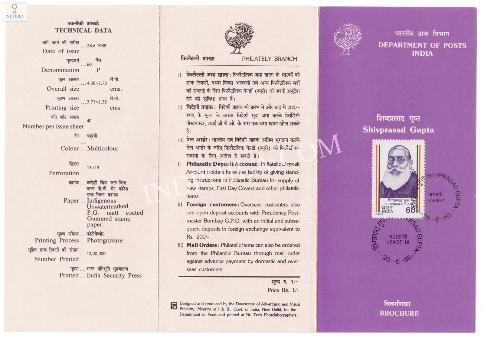 Shivprasad Gupta Brochure with First Day Cancellation 1988