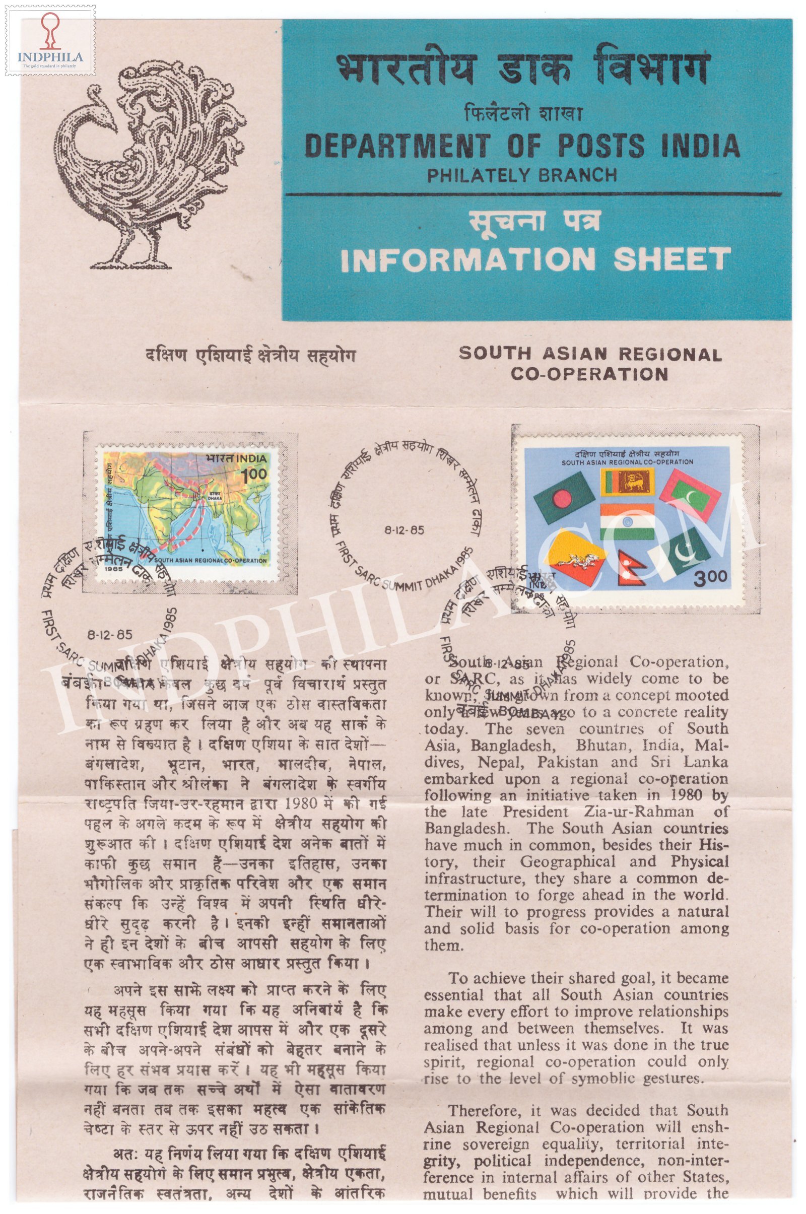 South Asian Regional Co -Operation Brochure with First Day Cancellation 1985