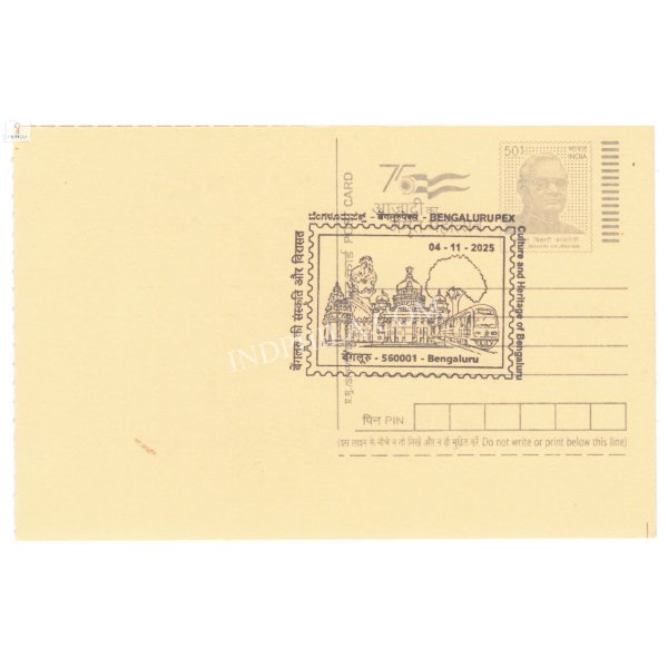 Special Cancellation of Bengalurupex Culture and Heritage of Bengaluru 2025 on Postal Stationery Postcard