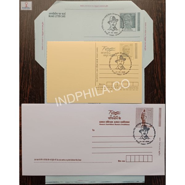 Special Cancellation of Bhagat Singh Martyrdom Day 2026 on Postal Stationery Postcard Inland Letter And Envelope