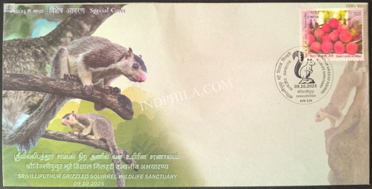 Special Cover of Srivilliputhur Grizzled Squirrel Wildlife Sanctuary was released on 9th October 2025 Srivilliputhur