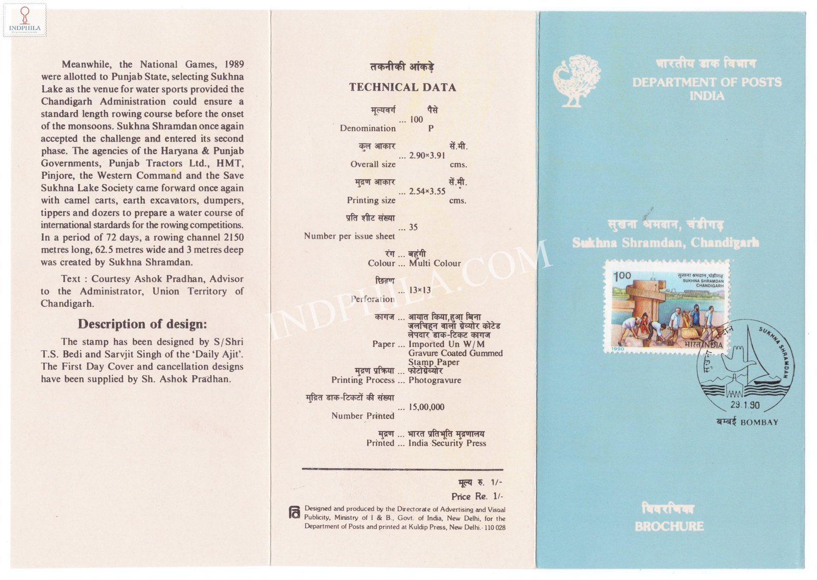 Sukhna Shramdan Project Chandigarh Brochure with First Day Cancelation 1990