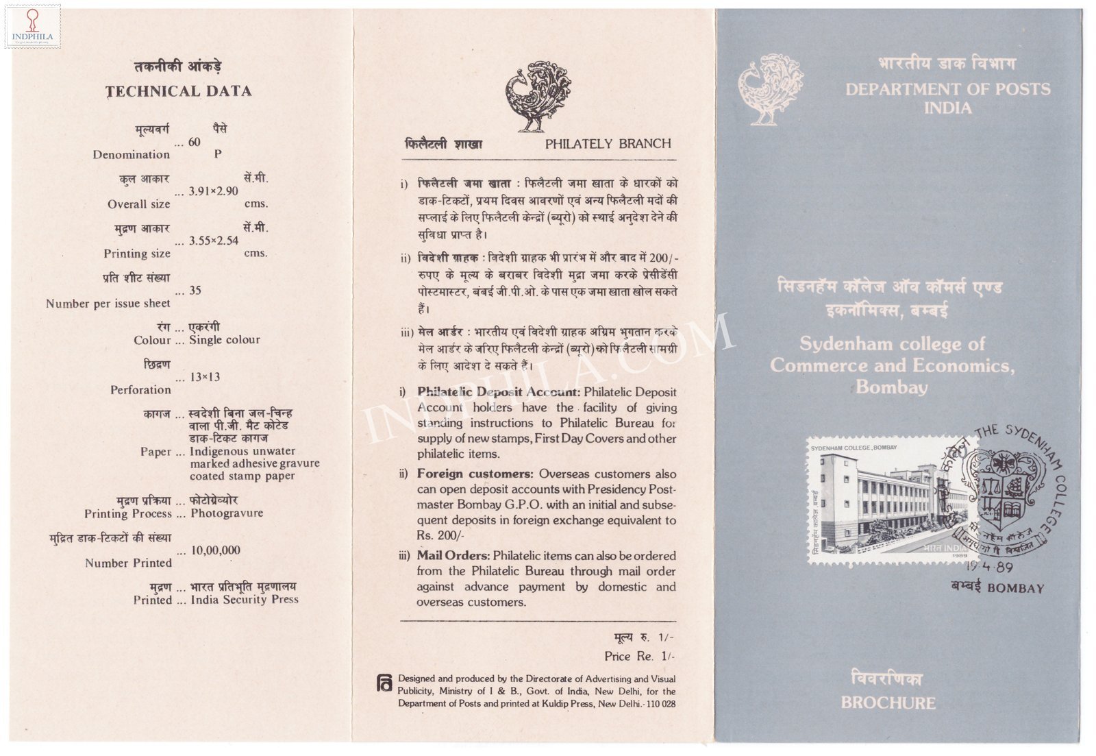 Sydenham College of Commerce and Economics Bombay Brochure with First Day Cancellation 1989