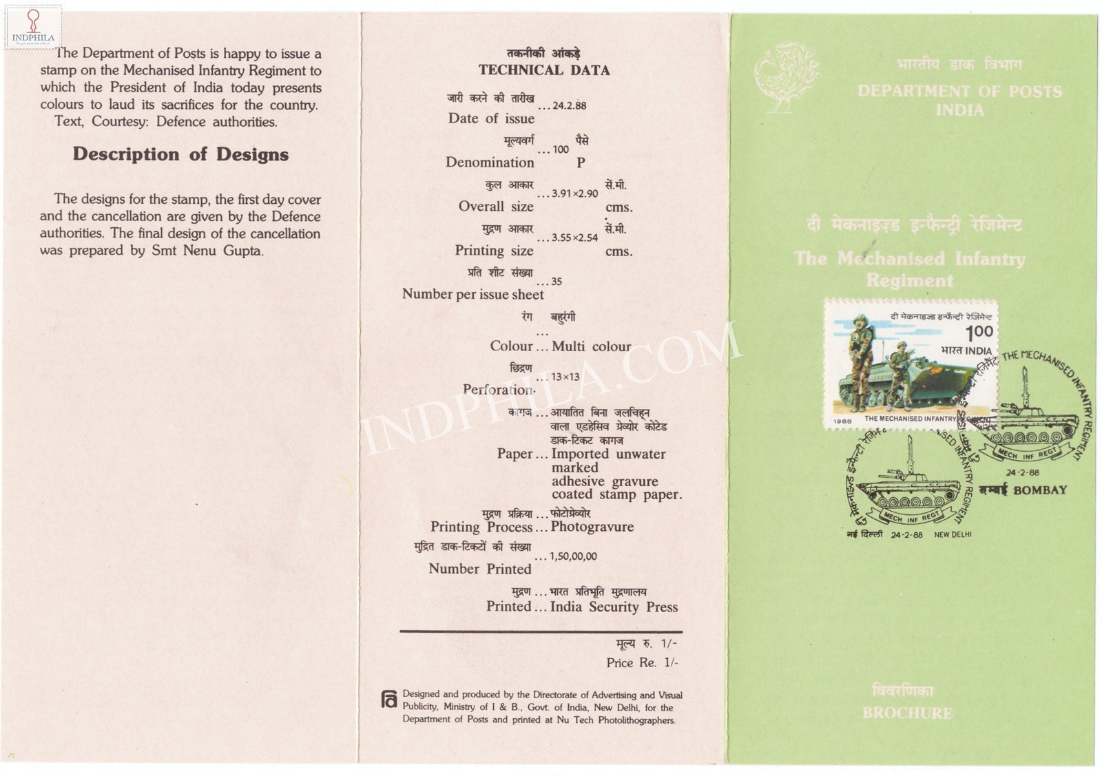 The Mechanised Infantry Regiment Brochure with First Day Cancellation 1988 Issued By Postal Department