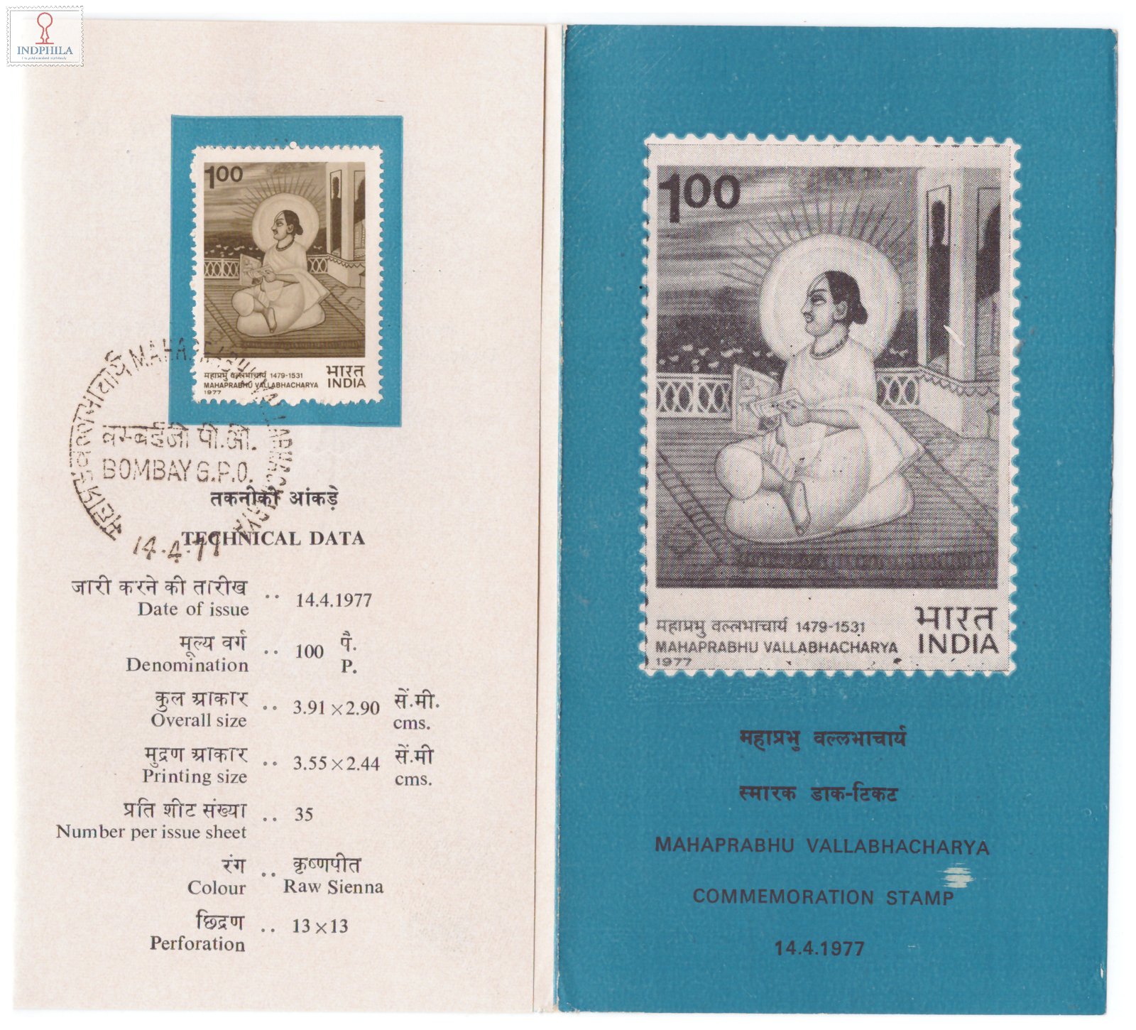 Vallabhacharya Brochure with First Day Cancellation 1977 Issued By Postal Department