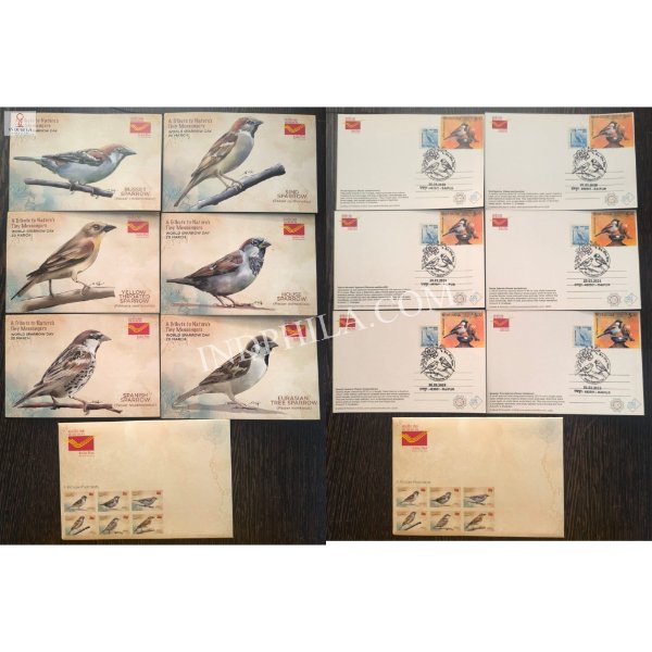 World Sparrow Day Set of 6 Cancelled Picture Post Cards With Raipur Back Side Cancellation 2025