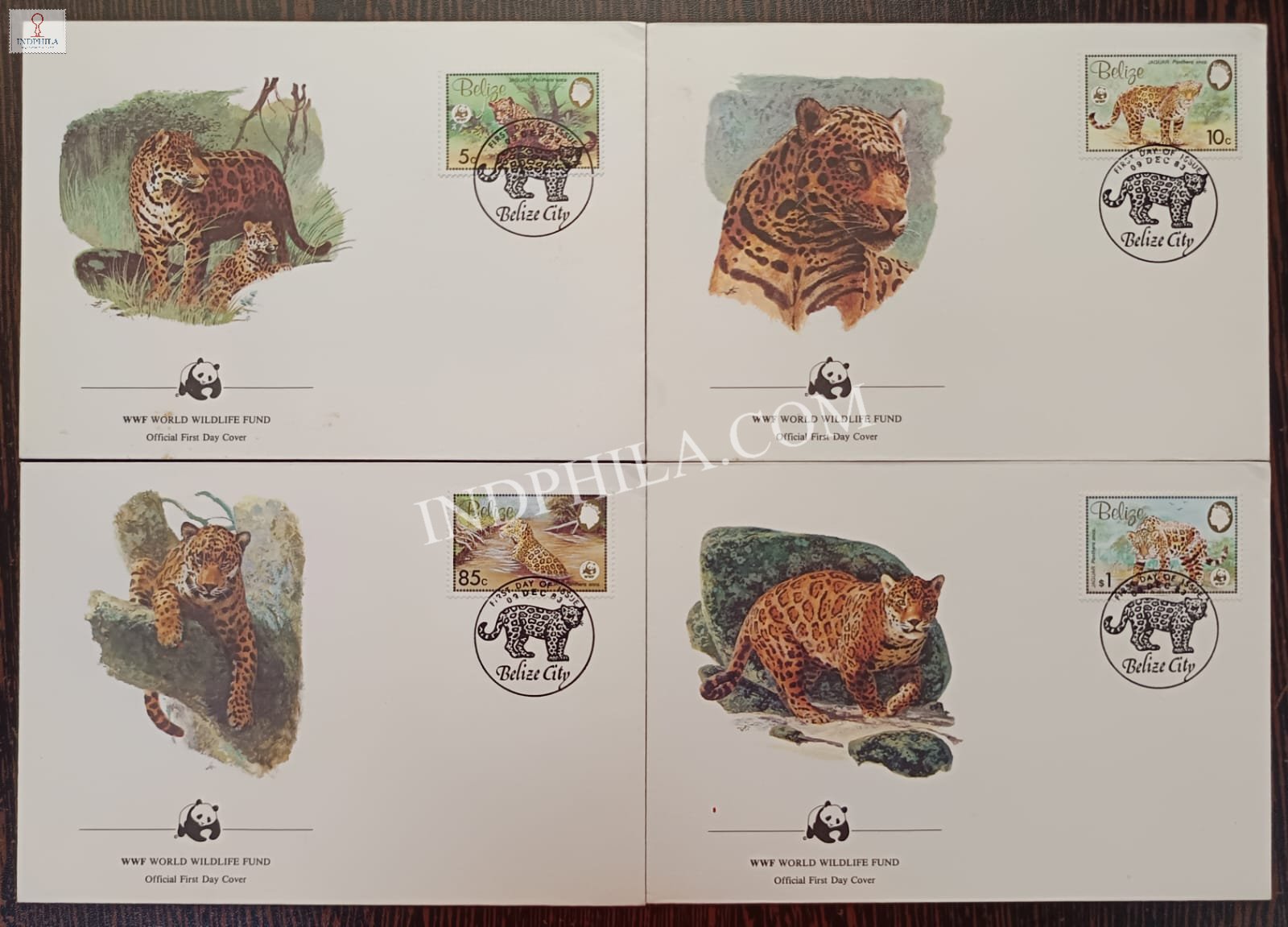 WWF Frist Day Cover of Belize Jaguar 1983 Set of 4 Covers