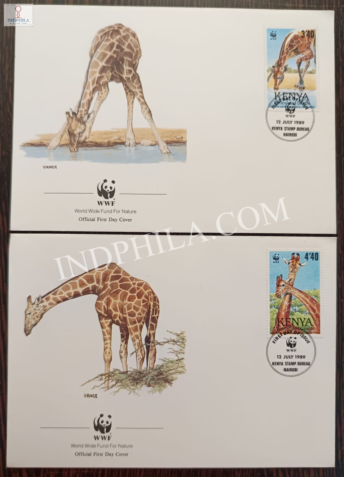 WWF Frist Day Cover of Kenya Giraffe1989 Set of 2 Covers